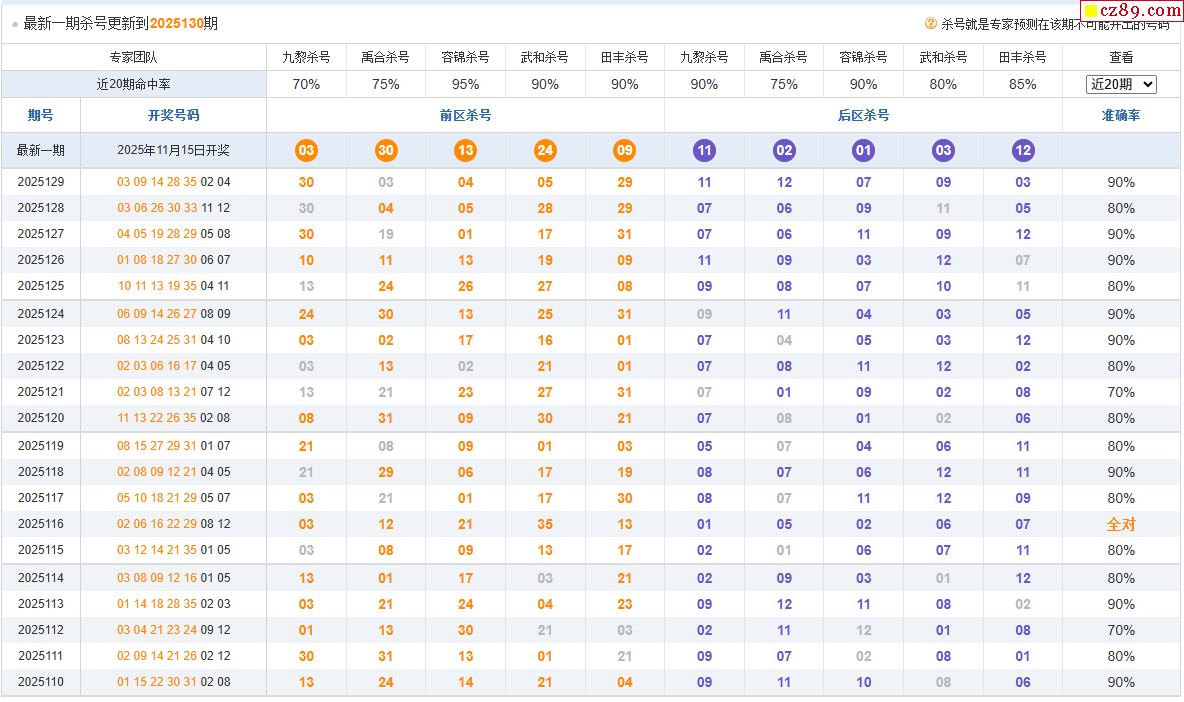 > 大乐透130期牛彩特邀专家前区后区杀号定胆图表