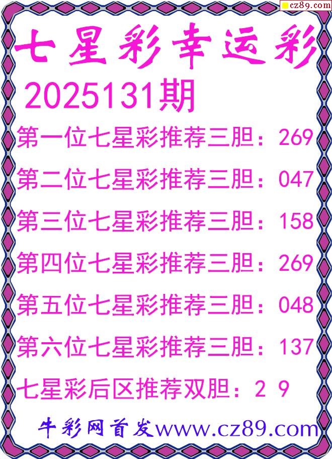 首页 > 七星彩预测 > 七星彩2025131期幸运彩三胆图谜